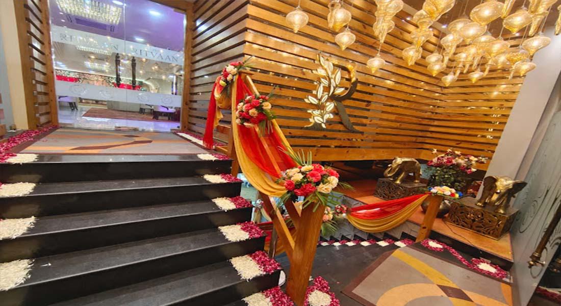 The Ritvaan, Sector 49, Noida is an exquisite and stunning event hall with a royal theme color of greyish and bluish that enhances the overall ambiance of the venue. The seating structure is eye-pleasi